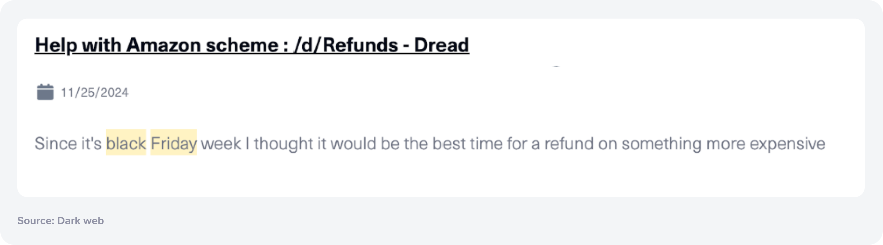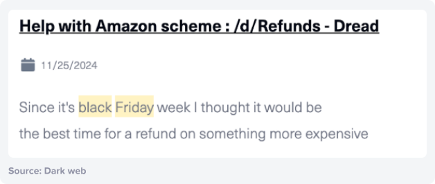 Riskified conducted a year-long analysis of data from a subset of major retailers to quantify abusive INR and missing-item claims and their costs. The results confirm that refund abuse is no mere operational nuisance. It is a costly and organized threat, amplified by dark-web communities that treat the busy holiday period as “prime refunding season.”